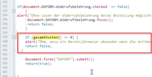 if (gesamtKosten() == 0) {