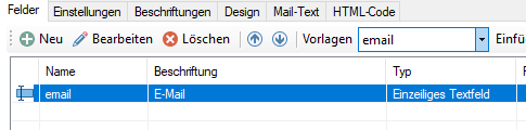 Im ersten Schritt muss dazu ein Feld mit dem Namen "email" im Formular enthalten sein: