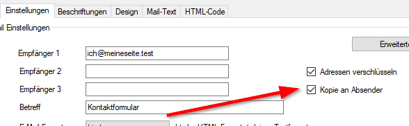 Aktivieren Sie anschließend die Kopie an den Absender: