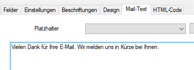 Im Reiter "Mailtext" können Sie nun den gewünschten Text festlegen: