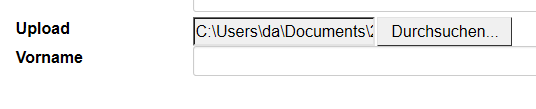 Dateiuploadfelder werden vom Browser speziell behandelt. Design, Beschriftung und Text kommen direkt vom Browser. Jeder Browser stellt diese entsprechend dar.