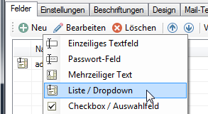 Anschließend legen Sie ein neues Dropdownfeld an: