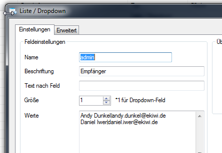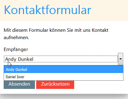 Beide Werte werden mit "|" getrennt. Im fertigen Formular sieht es dann so aus: