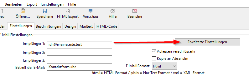 In der Software geht man dazu in die erweiterten Einstellungen:
