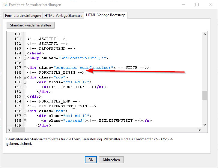 Soll im Formular standardmäßig ein Logo eingebaut sein, geht dies durch Bearbeitung des Templates für das Formular.