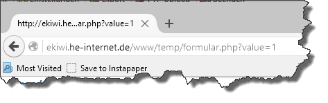 Die Datei kann nun mit dem Parameter aufgerufen werden. Fügen Sie am Ende der URL den Parameter hinzu, z.B. ?value=1.