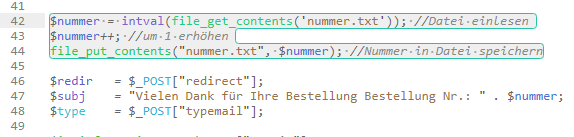 file_put_contents("nummer.txt", $nummer); //Nummer in Datei speichern